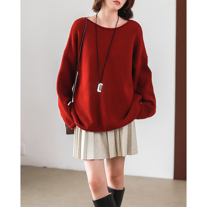 - 红色女毛衣套头