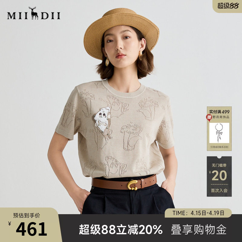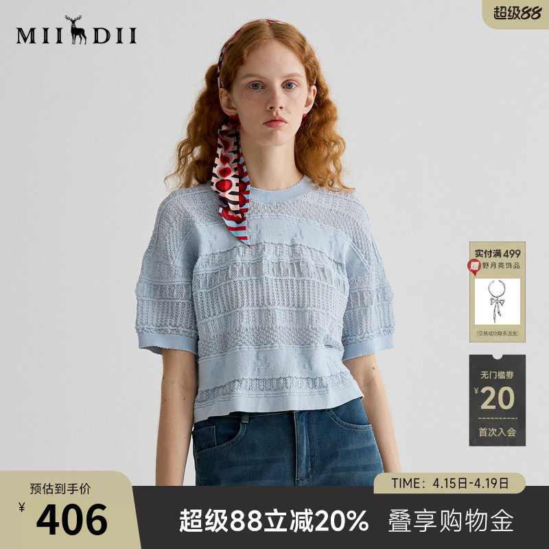 谜底针织衫短袖女25夏迪木尔风复古文艺宽松H型中长毛衣252MZ0893