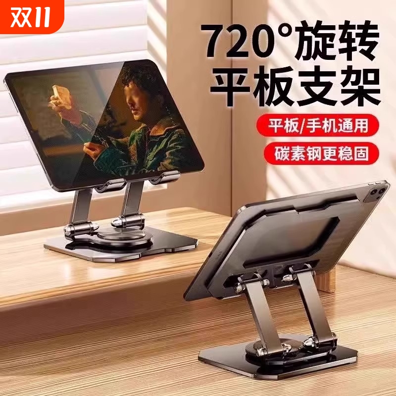 平板电脑支架ipad手机通用旋转碳素钢手机架子金属追剧直播便携手机支架看剧懒人桌面平板支架手机架子折叠