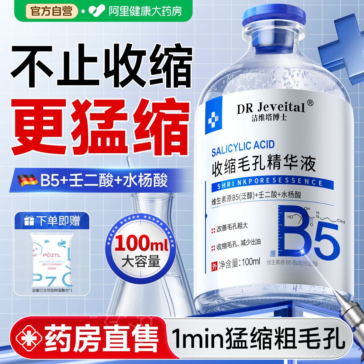 b5精华液收缩毛孔粗大修复去黑头粉刺深层清洁闭口湿敷水杨酸祛痘