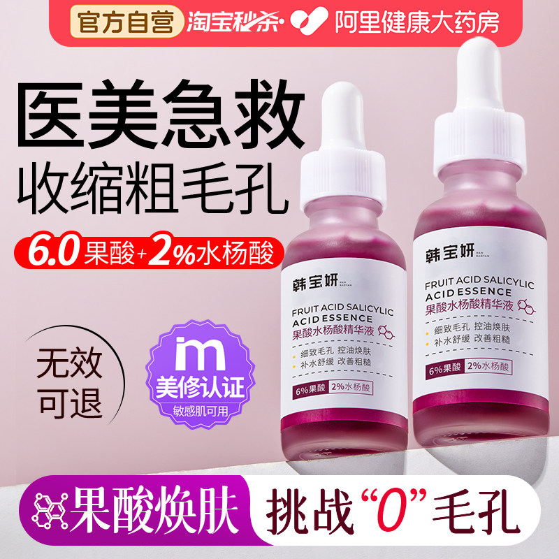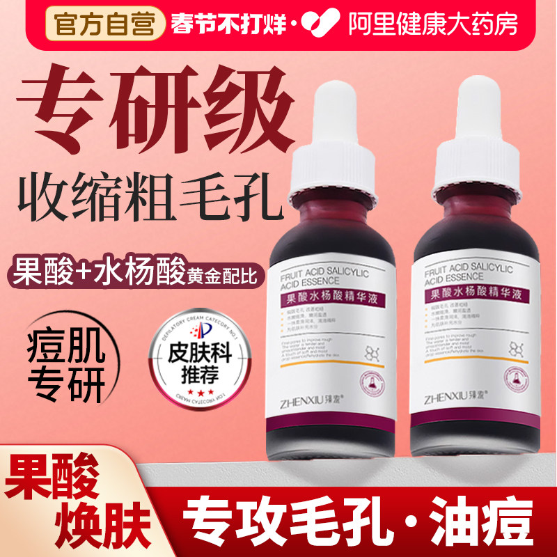 果酸水杨酸祛痘精华液去闭口粉刺黑头毛孔粗大收缩修复刷精华水酸