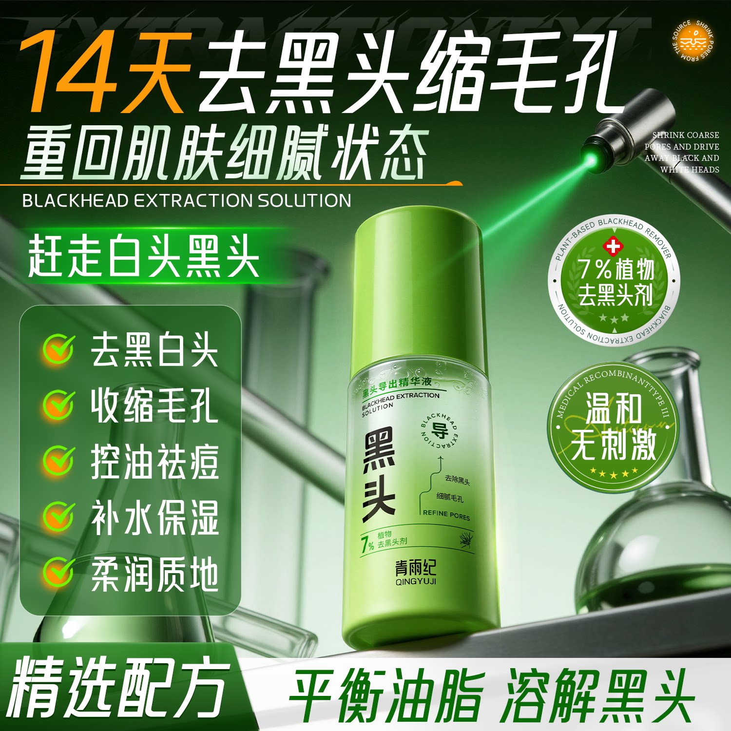 横扫黑头|去黑头精华液深层清洁温和去黑头粉刺深层清洁收缩毛孔