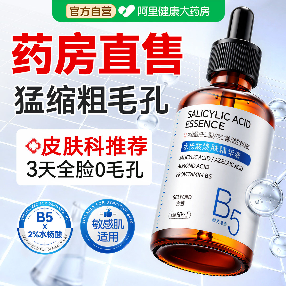 b5精华液收缩毛孔粗大修复控油去黑头粉刺闭口湿敷水杨酸淡化痘印