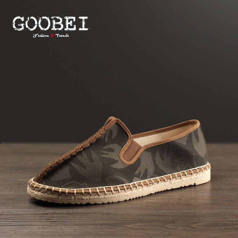 春夏复古麻底布鞋懒人鞋一脚蹬布鞋男式套脚鞋单鞋防臭舒适低帮鞋