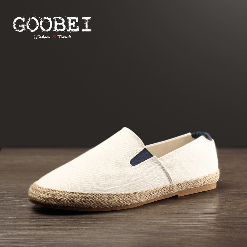 GOOBEI古贝2026春夏新款男士草鞋一脚蹬懒人鞋百搭大码白色帆布鞋