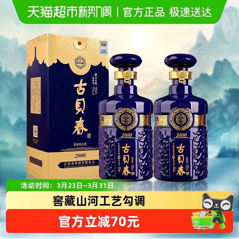 古贝春 蓝2000 浓香型白酒 42度 500ml*2瓶 双瓶装 宴请送礼酒