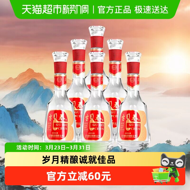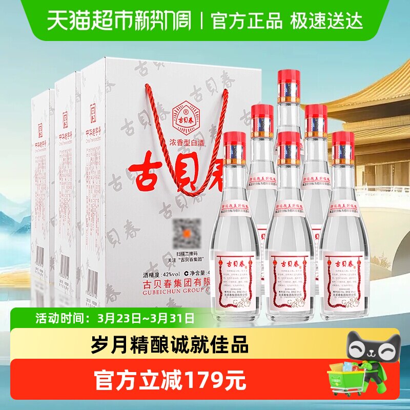 古贝春42度白板浓香型固态法白酒送礼宴请接待475ml*6瓶整箱装
