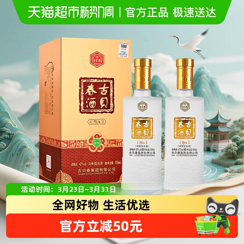 古贝春 生态叁A 浓香型白酒 42度 500ml*2瓶 双瓶装 宴请送礼酒