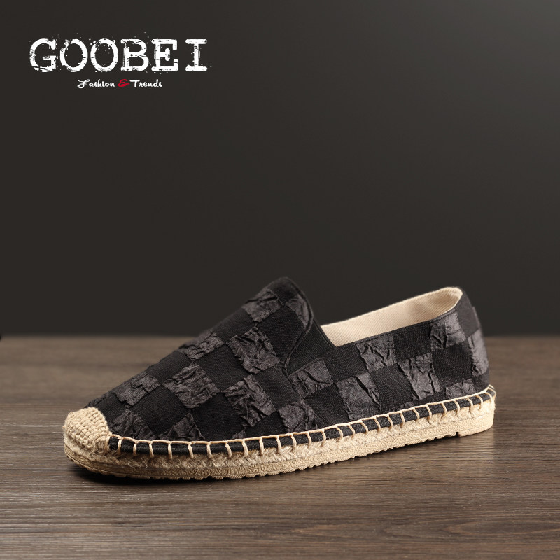 春夏新款渔夫鞋男潮鞋褶皱压纹布鞋透气防臭休闲懒人一脚蹬麻底鞋