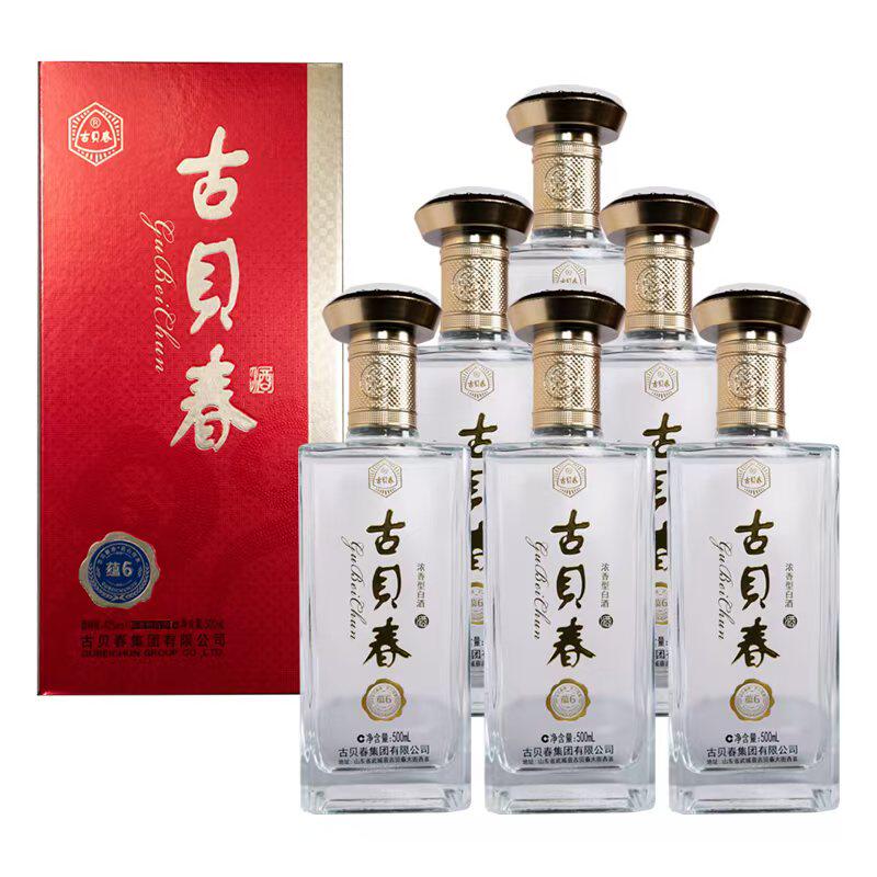 古贝春52度水晶白版浓香型纯粮高端固态法白酒送礼500ml*6瓶整箱