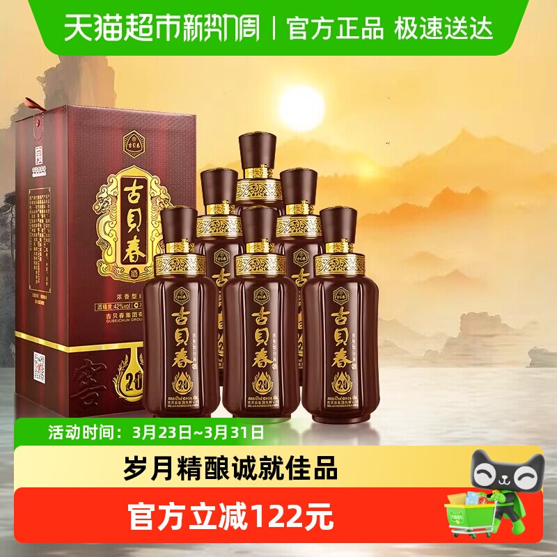 古贝春 窖龄20 浓香型白酒 42度 500ml*6瓶 整箱装 商务宴请