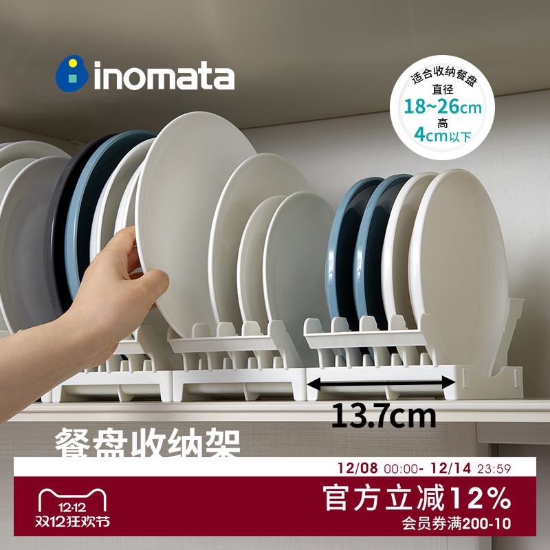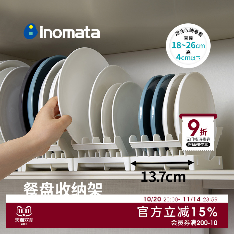 inomata日本进口餐盘收纳架厨房台面盘子置物架橱柜内碟子分隔架