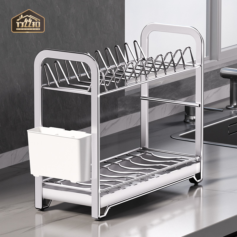 护家沥水碗盘架不锈钢小型双层碗架厨房置物架放碗碟子盘子收纳架