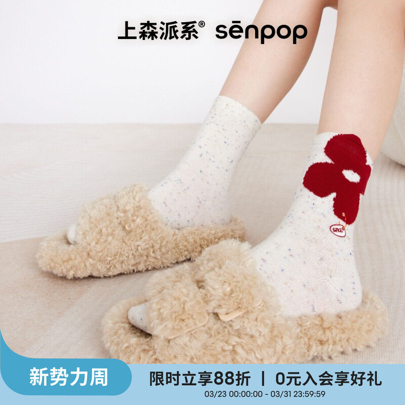 羊毛保暖 |上森袜子女中筒袜白色棉袜月子袜秋冬季ins潮长袜红袜