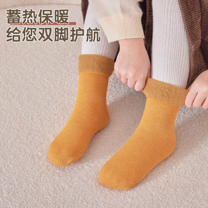 儿童袜子冬季女童加厚保暖羊毛袜男童秋冬厚高筒袜中大童加绒棉袜