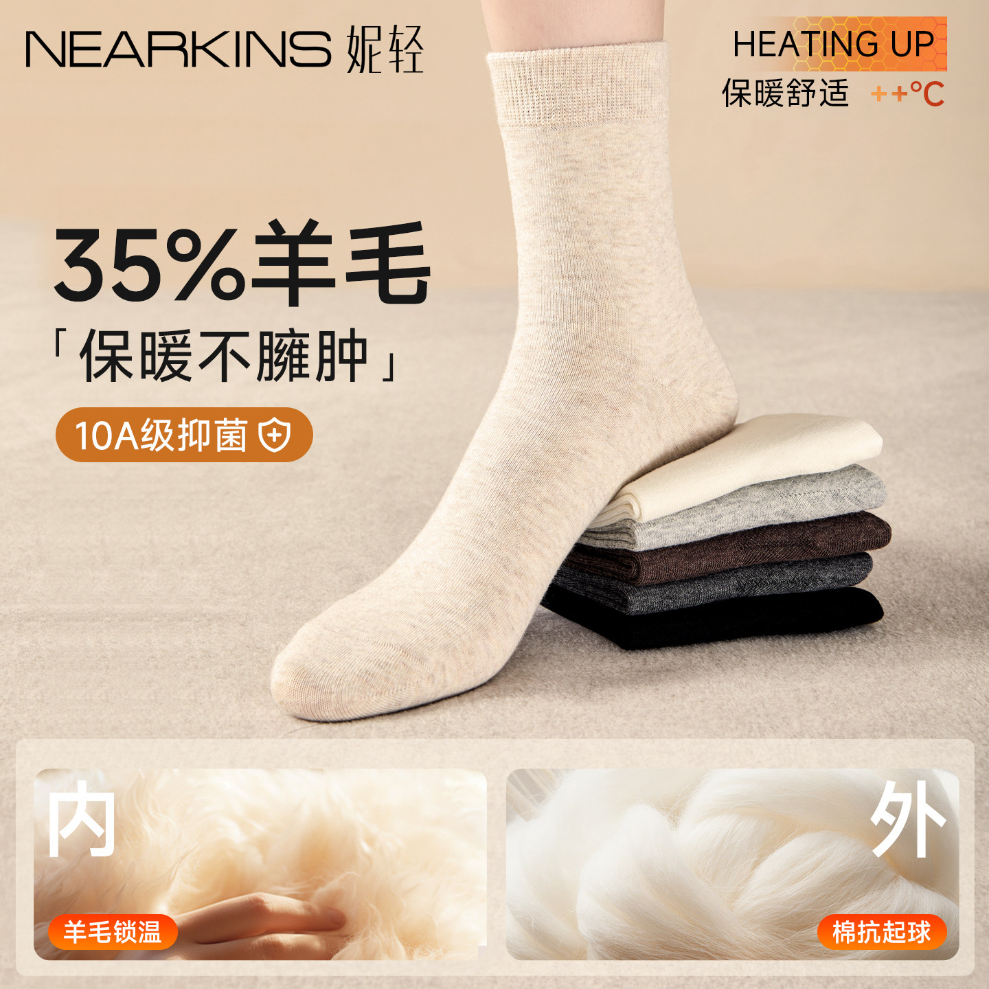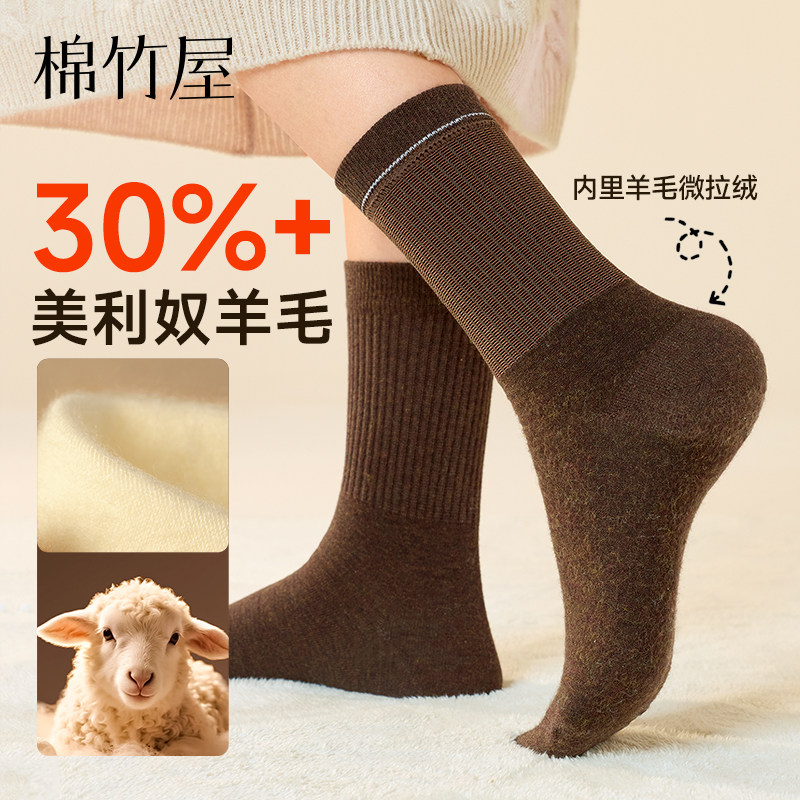 羊毛袜子女士美利奴中筒袜秋冬季2025新款冬天加绒保暖防臭长棉袜