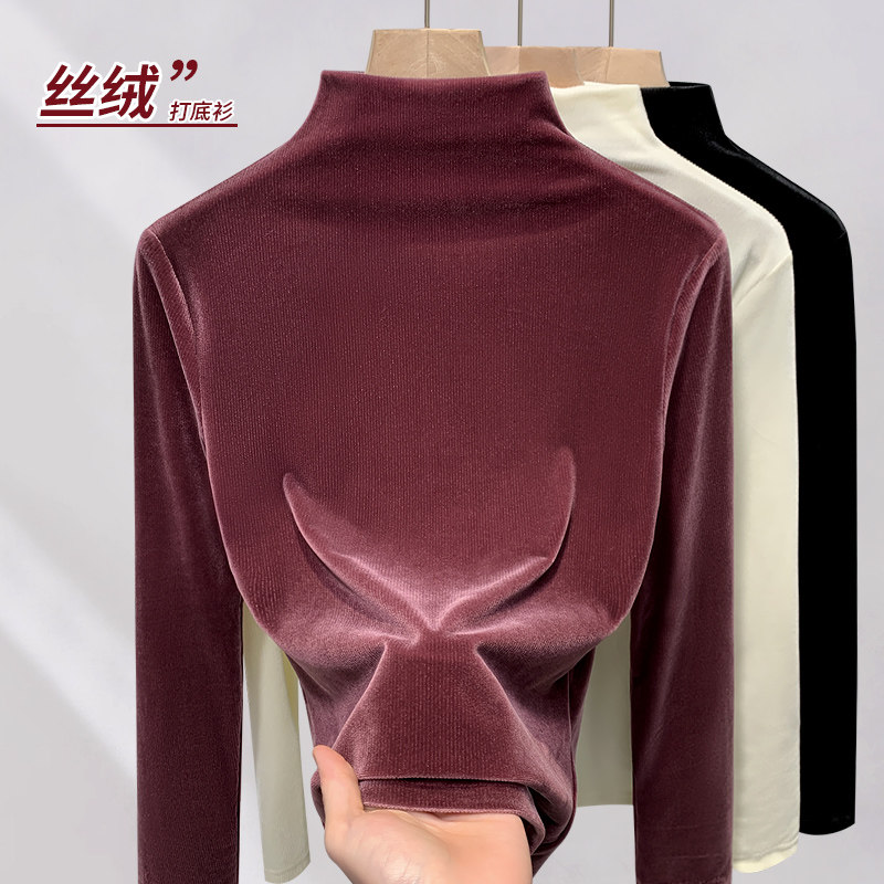 金丝绒半高领打底衫女2026新款冬高级感内搭长袖T恤时尚洋气上衣