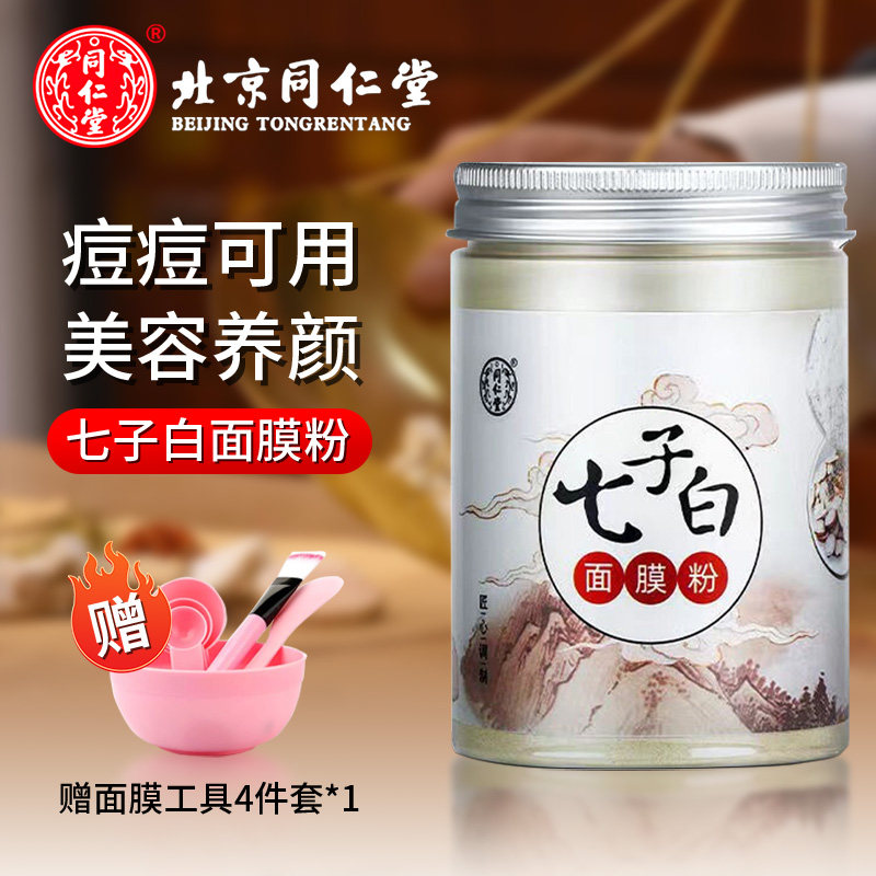 北京同仁堂草本七子白面膜粉珍珠粉美颜去斑补水保湿淡化痘印黑头