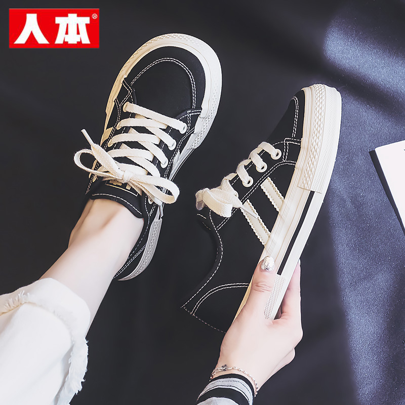 人本帆布鞋女大码女鞋41厚底鞋子黑色女款单鞋新款运动鞋休闲板鞋