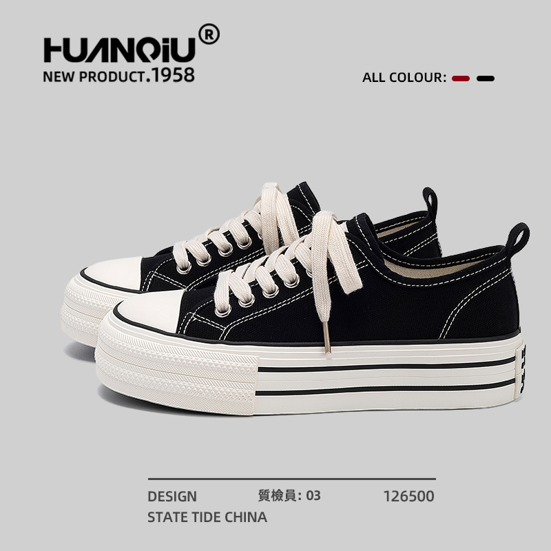 环球黑色帆布鞋女2025秋季新款厚底板鞋超火低帮百搭运动休闲鞋子