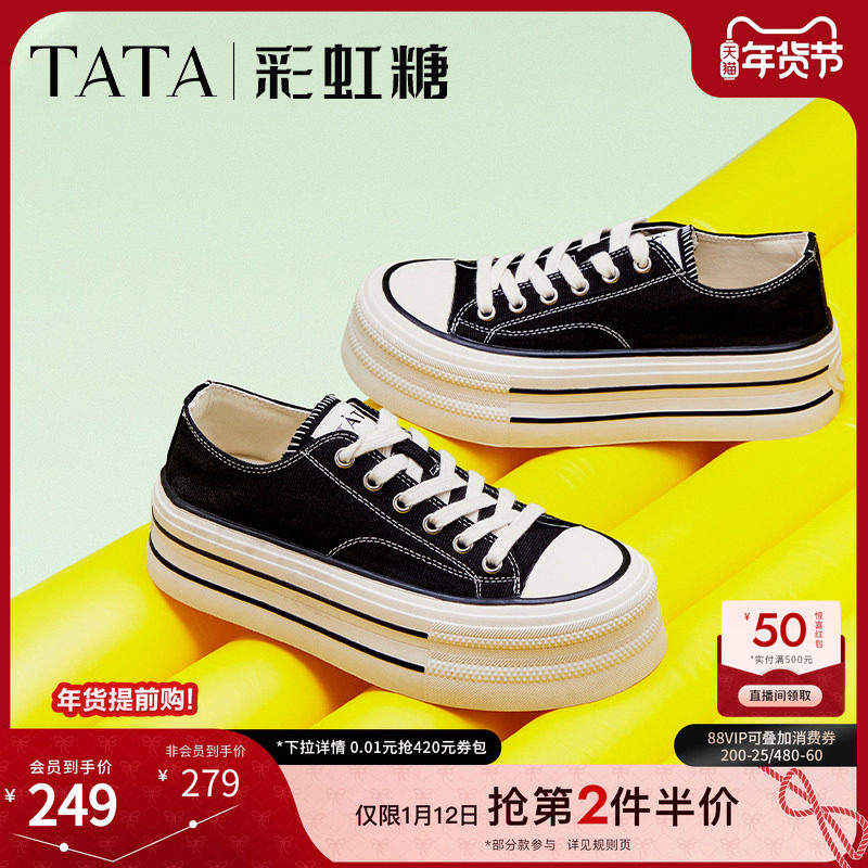 TATA他她彩虹糖厚底帆布鞋女透气新款黑色板鞋休闲小白鞋WP801AM5