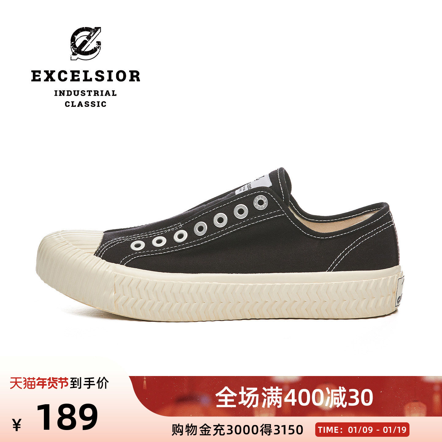 excelsior饼干鞋官方 增高厚底懒人鞋女黑色低帮一脚蹬帆布鞋男