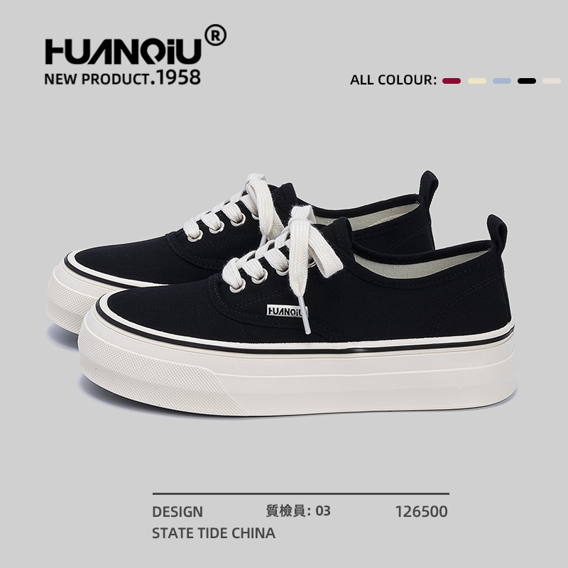 环球厚底帆布鞋女2025新款爆款百搭透气黑色板鞋女轻便休闲鞋子女