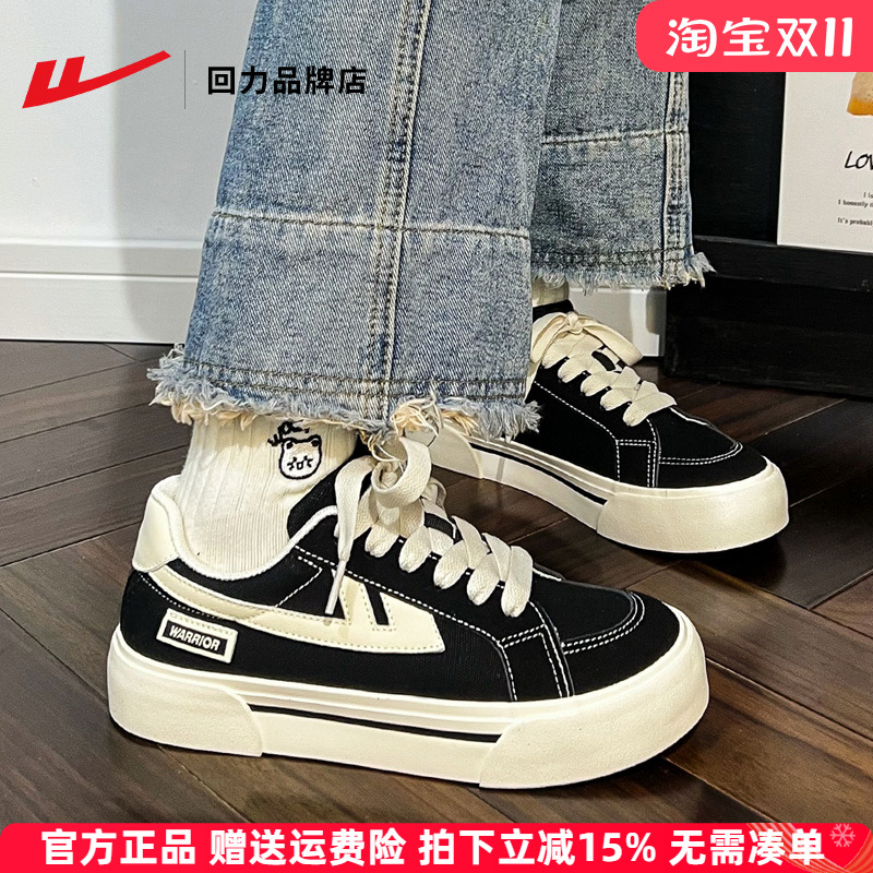 回力旗舰店帆布鞋女2025秋季新款黑色百搭鞋子休闲鞋厚底加绒板鞋