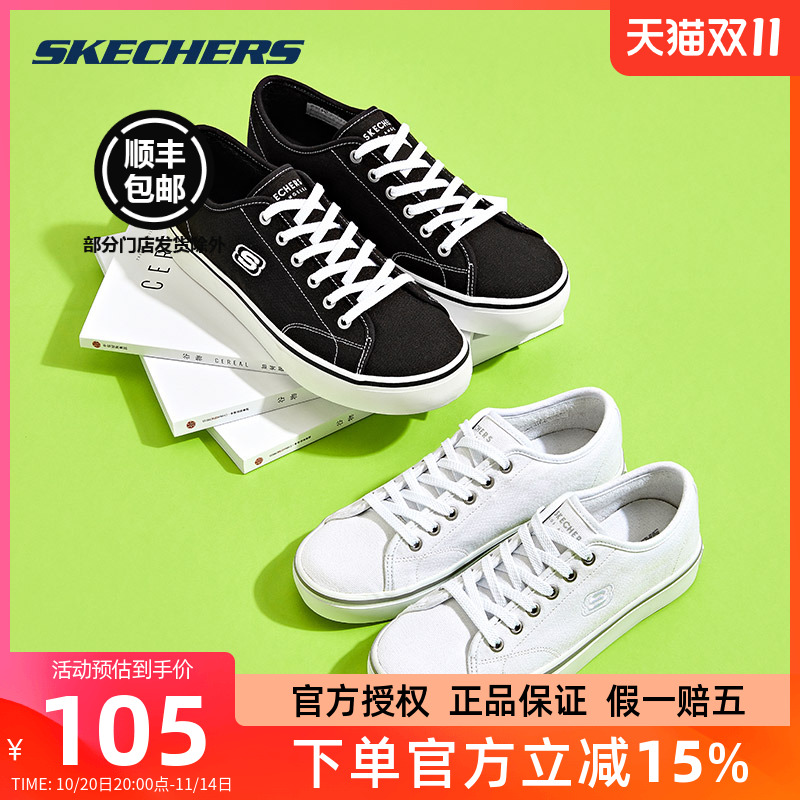 斯凯奇帆布鞋女鞋厚底 2025新款低帮增高小白鞋休闲板鞋经典黑色