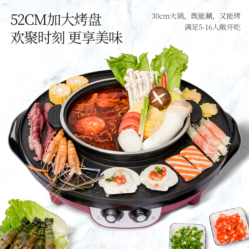 超大号52CM烤盘30CM火锅烧烤炉涮烤火锅烧烤一体锅家用多功能烤盘