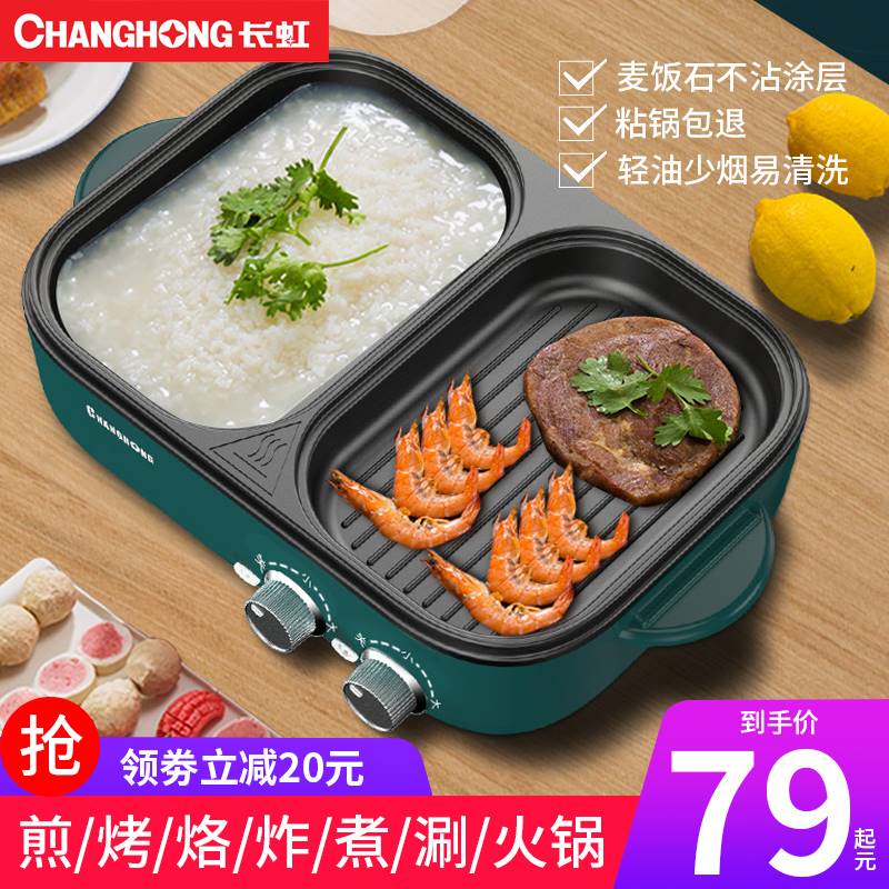 长虹火锅烧烤一体锅家用多功能煎煮涮学生宿舍烤肉盘电烤盘烧烤炉