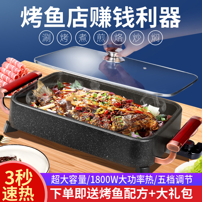 火锅烧烤一体锅家用烤肉盘电烤盘多功能烤鱼炉商用纸包鱼专用涮烤
