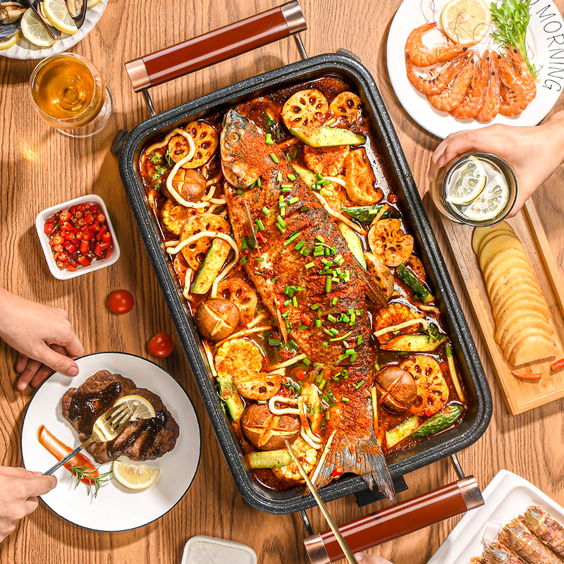 欧诺福烤肉锅电烤盘火锅烧烤一体锅家用纸包鱼专用锅商用烤鱼炉机
