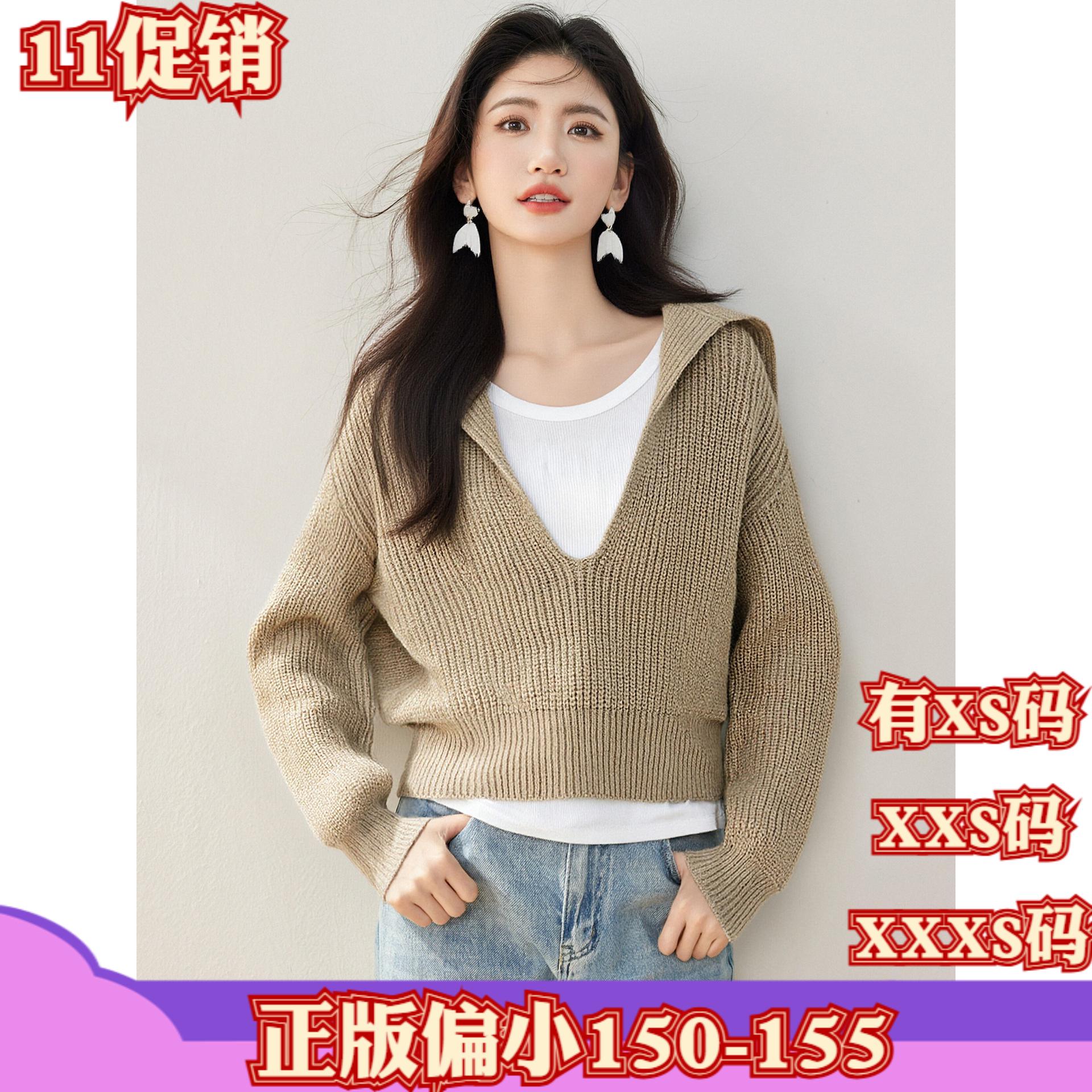 冬季150cm小个子女装显高155XXXS短款毛衣女套头针织衫长袖打底衫