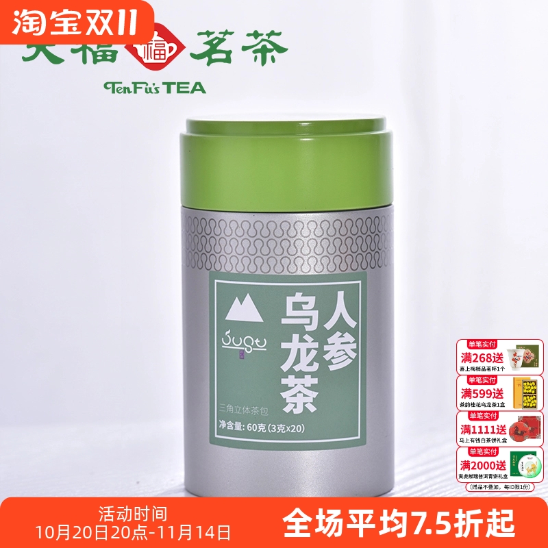 天福茗茶 Just.T匠心茶 人参乌龙茶 茶叶茶包泡茶小袋装罐装60g