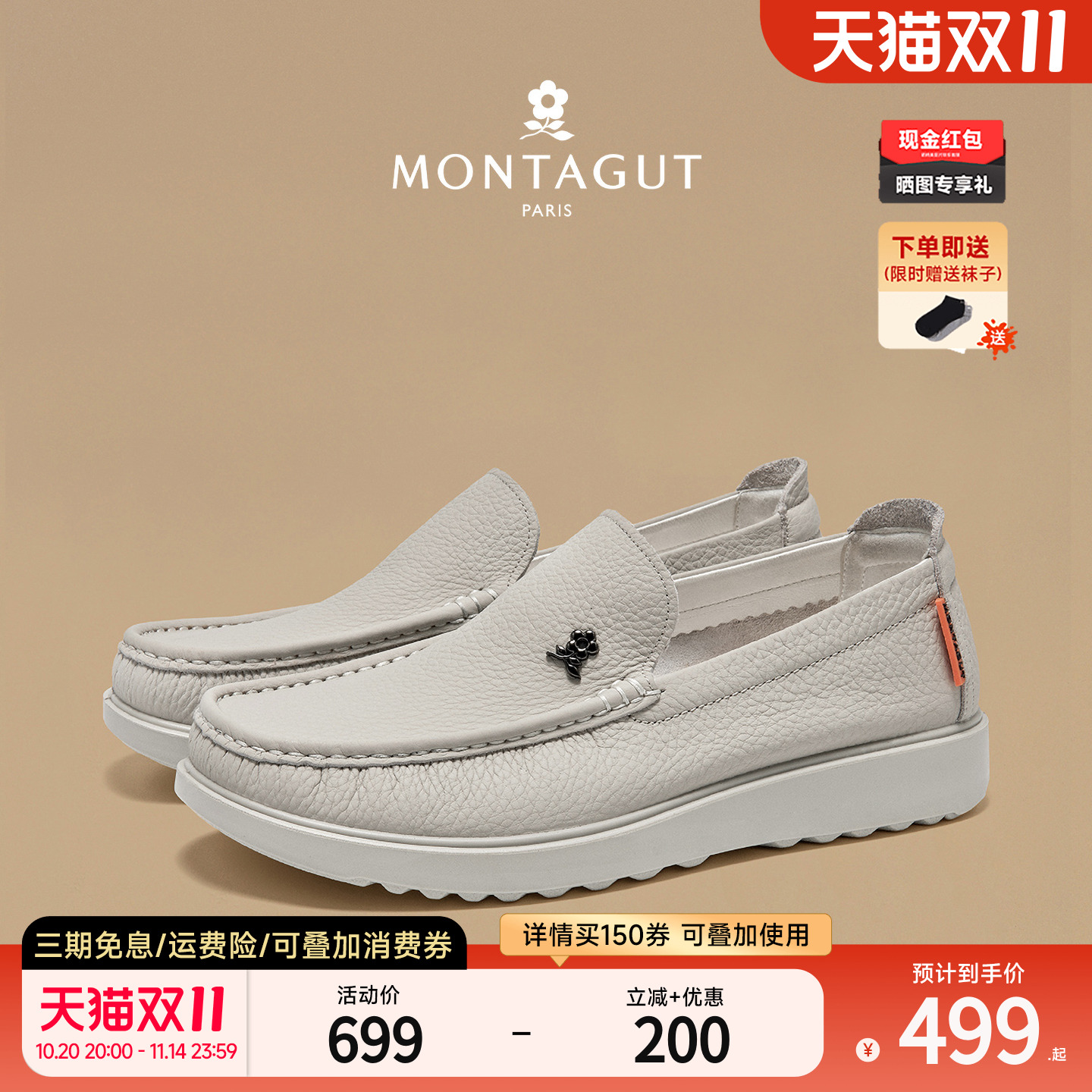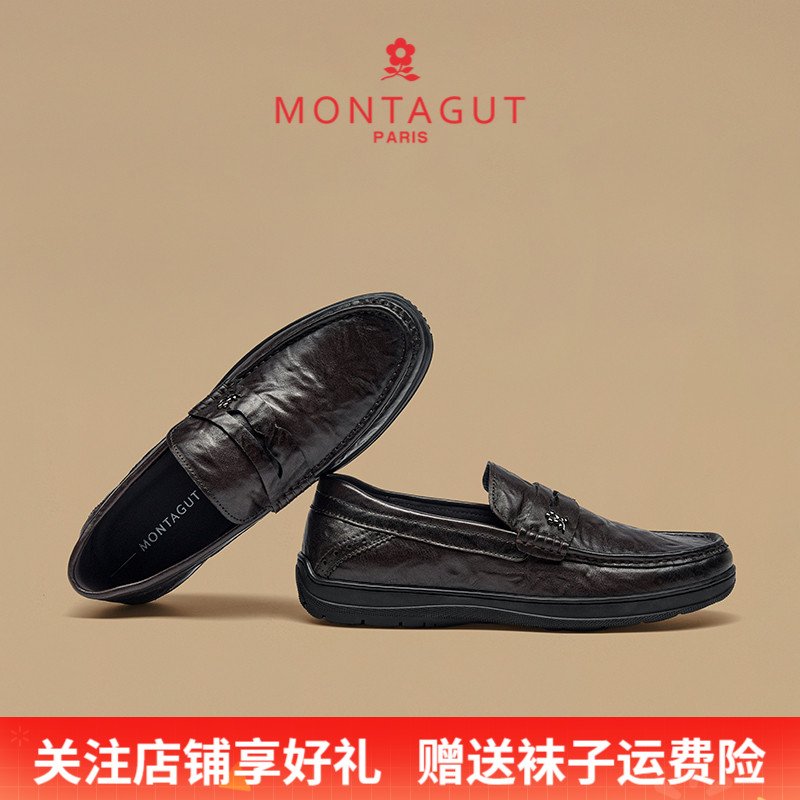 Montagut/梦特娇一脚蹬软底豆豆鞋 秋冬头层牛皮商务休闲乐福男鞋