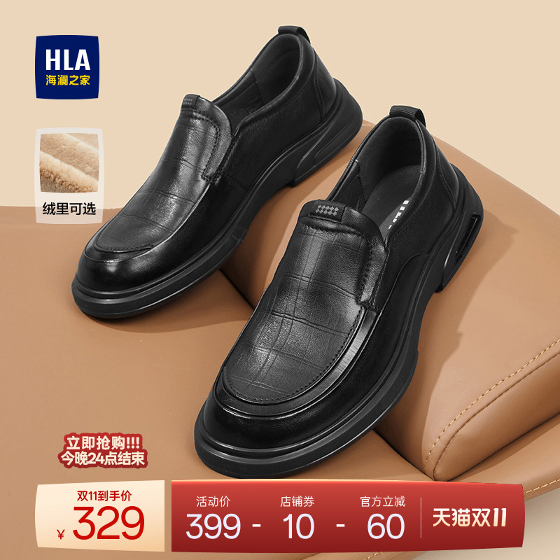 HLA/海澜之家男鞋新款鞋乐福秋冬套脚软底真皮休闲加绒皮鞋中年鞋