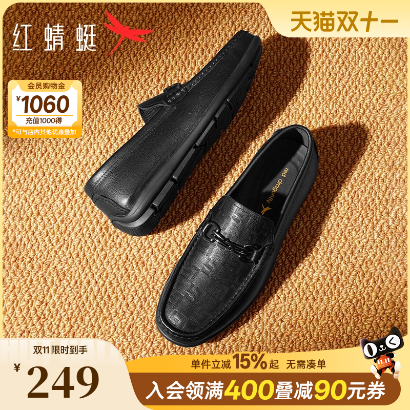 红蜻蜓豆豆鞋男士新款真皮休闲皮鞋中老年商务通勤一脚蹬乐福男鞋
