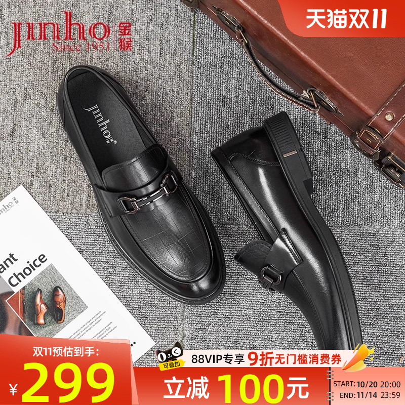 金猴皮鞋男2025秋季新款手抓纹商务休闲牛皮轻便软底套脚乐福男鞋