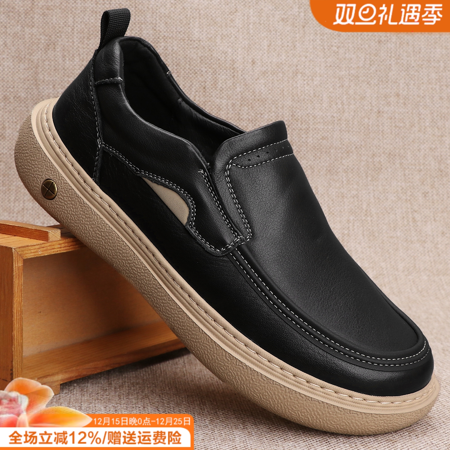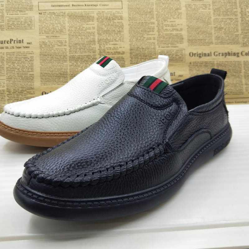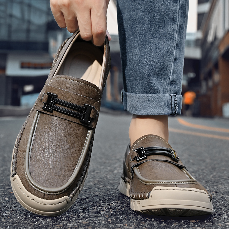 2025年新款真皮头层牛皮上线软底一脚蹬防滑透气休闲驾车乐福男鞋