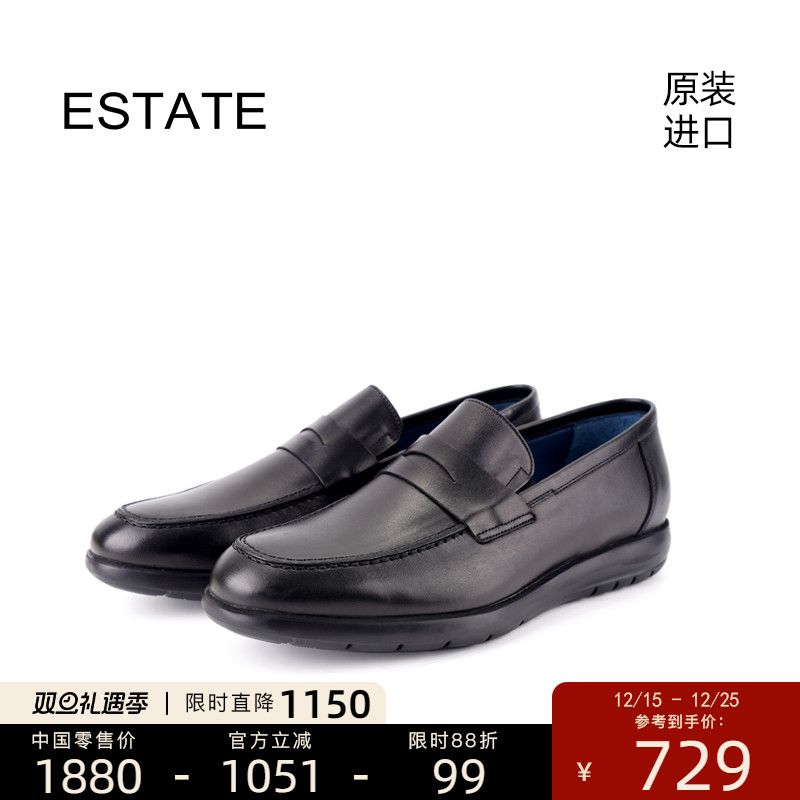 ESTATE进口商务休闲一脚蹬懒人鞋轻质真皮经典乐福男鞋 9765-ROC
