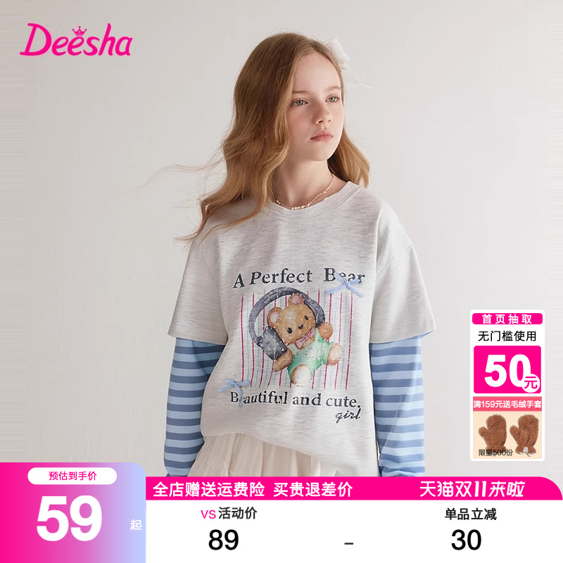 笛莎女童长袖T恤2025秋装新款中大童儿童体恤假两件洋气上衣春秋
