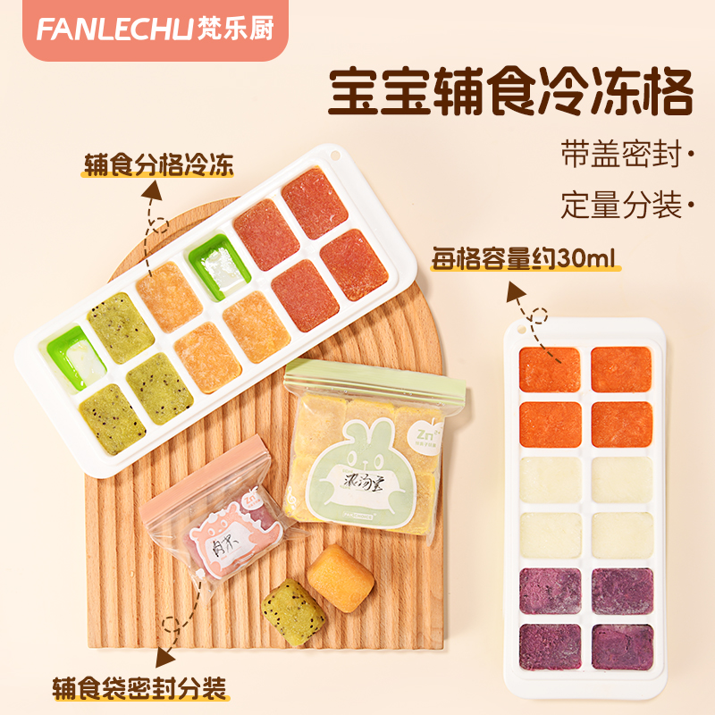 梵乐厨宝宝辅食盒婴儿专用保鲜肉泥浓汤冷冻储存辅食格带盖冰格盒
