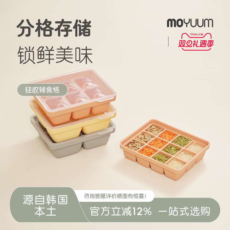 moyuum辅食格宝宝婴儿用肉泥保鲜冷藏盒硅胶软冰格冷冻防摔