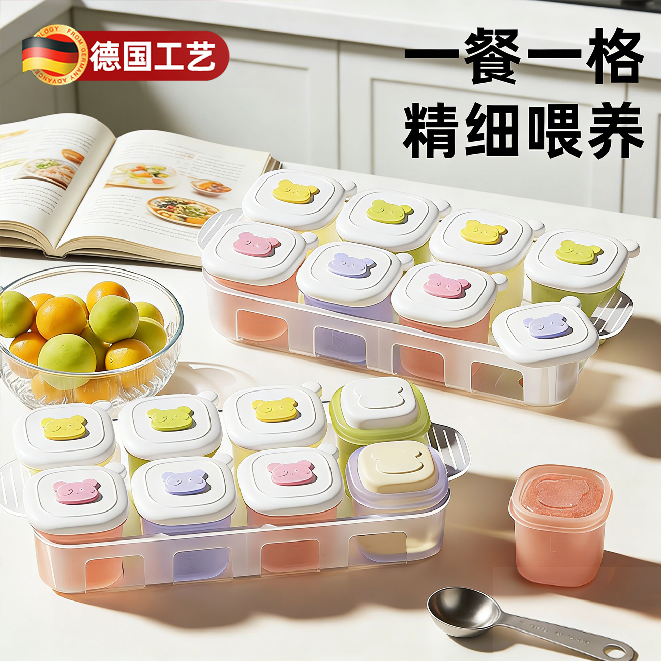 德国硅胶冷冻辅食格模具独立分装盒宝宝婴儿冰肉泥保鲜储存可蒸煮
