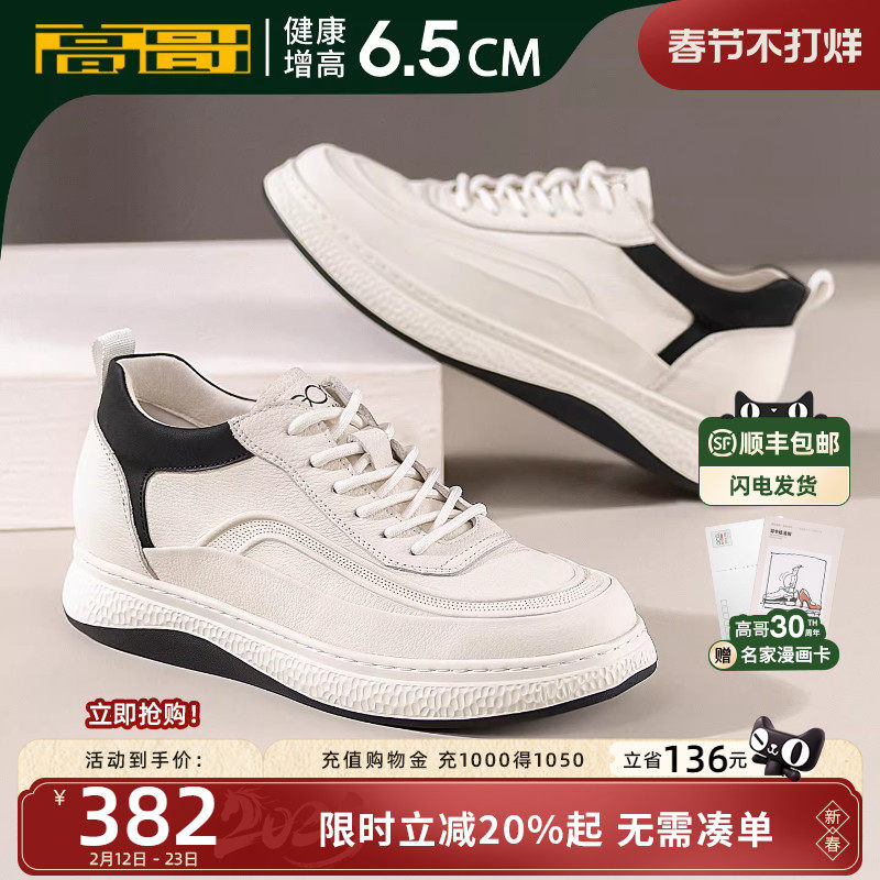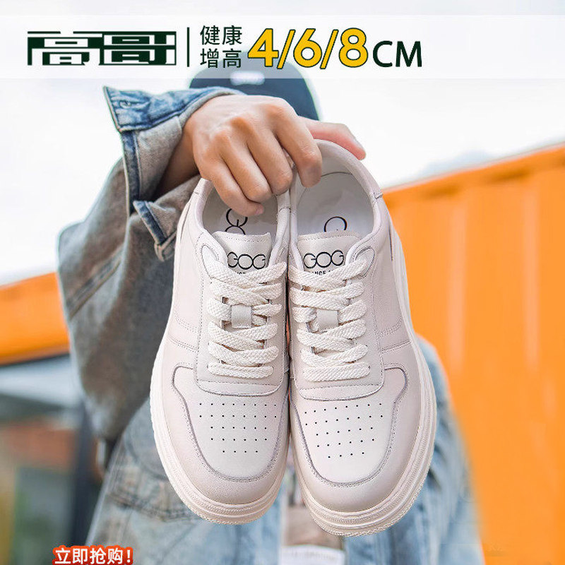 高哥增高鞋男6cm休闲板鞋白色轻便厚底内增高小白鞋真皮潮流男鞋