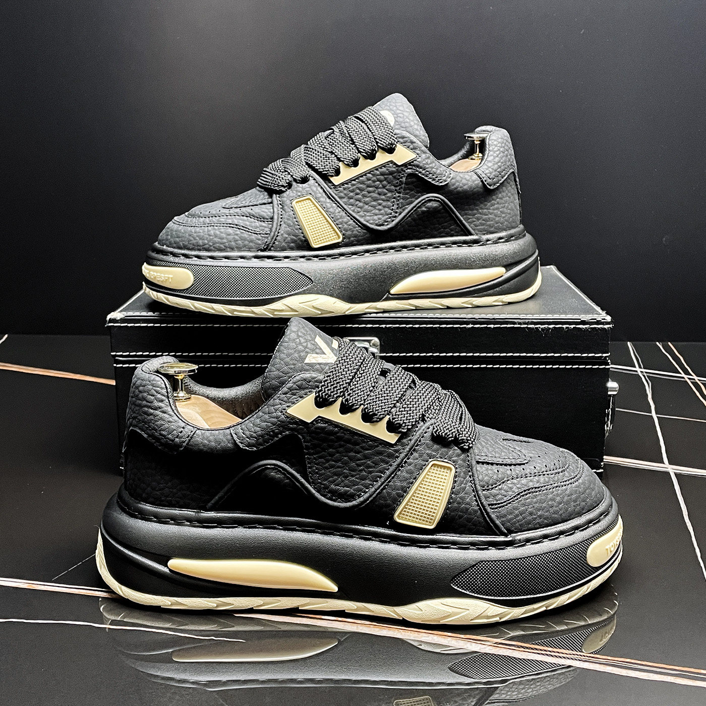男鞋爆款高级白色旋转纽扣休闲皮鞋男士内增高老爹鞋休闲鞋子男款