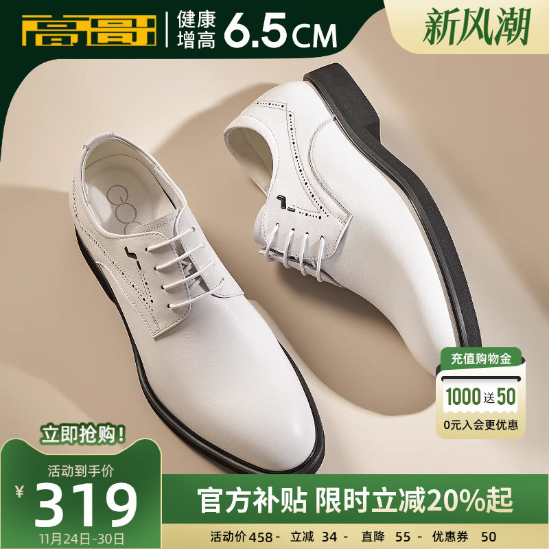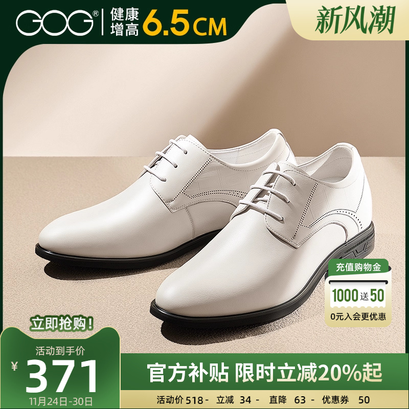 高哥内增高皮鞋白色真皮商务男鞋英伦正装结婚鞋隐形增高鞋36小码
