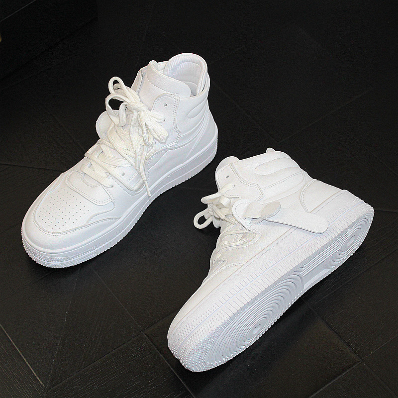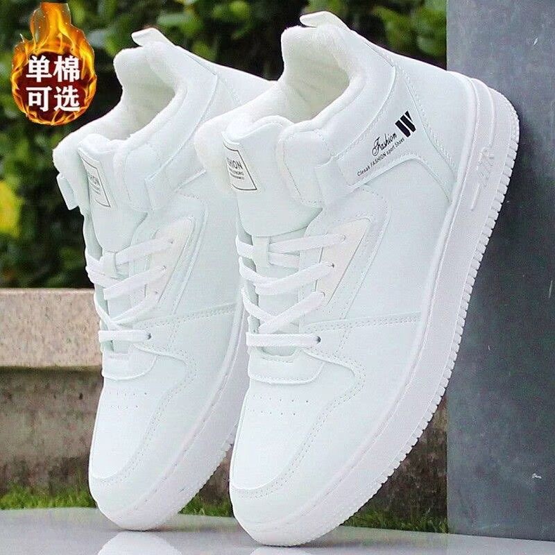 秋冬加绒白色高帮板鞋厚底韩版潮流青年休闲百搭男中帮内增高白鞋