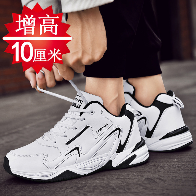 秋季运动鞋男内增高6CM潮鞋男士防滑防臭学生鞋白色皮面防水男鞋